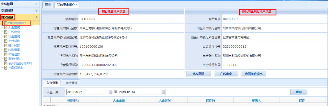 ⑤确定应价后,保证金自动冻结,会员可以自行查询本企业资金状态。