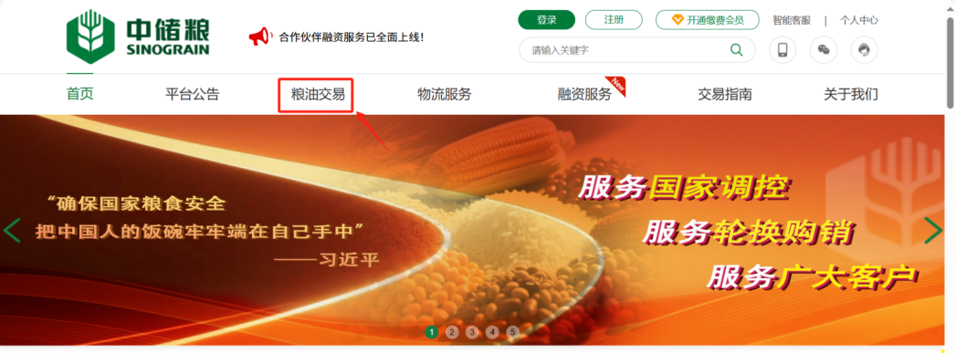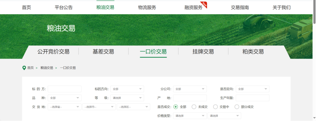①登录交易账号——返回首页——点击【粮油交易】——选择【一口价交易】/【挂牌交易】——点击【进入交易】
