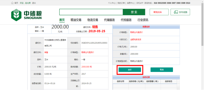 ③点击【应价】(应价界面可以查看信息有效期即公示期,交割截止日期,以及保证金金额);