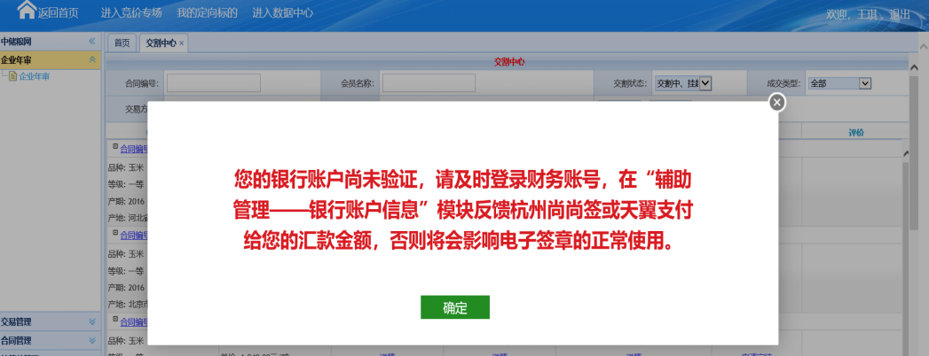 ③另一方登录交易账号 —— 点击【网上交割】—— 点击【交割中心】—— 点击【确认完结】—— 对交易方以及平台做出评价。(合同完结后,系统自动释放保证金)