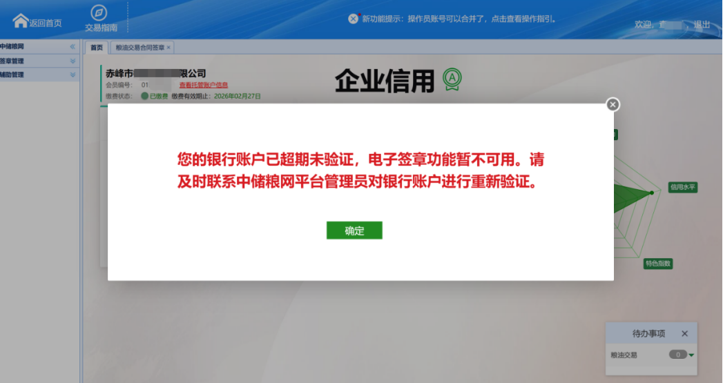 ②另一方同意变更,另一方登录交易账号 —— 点击【合同管理】—— 点击【合同变更管理】—— 点击【审核变更】