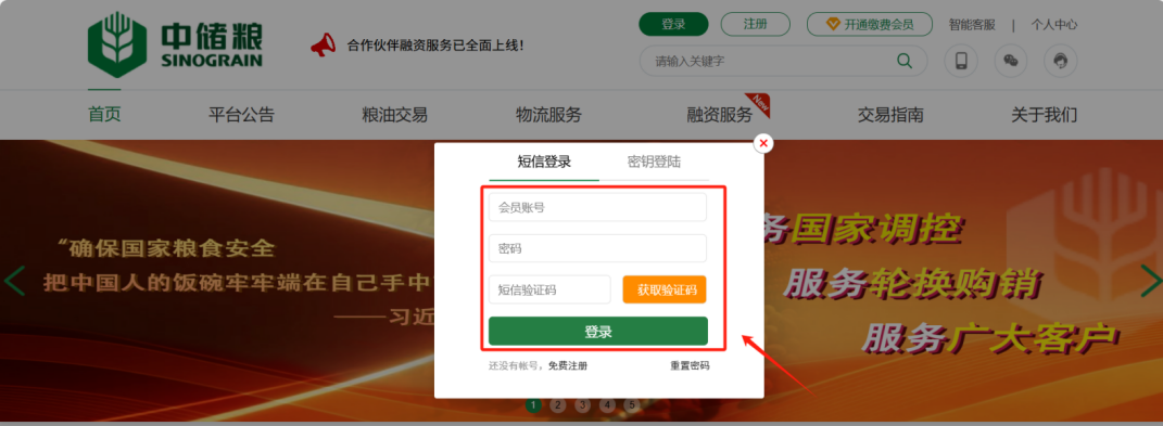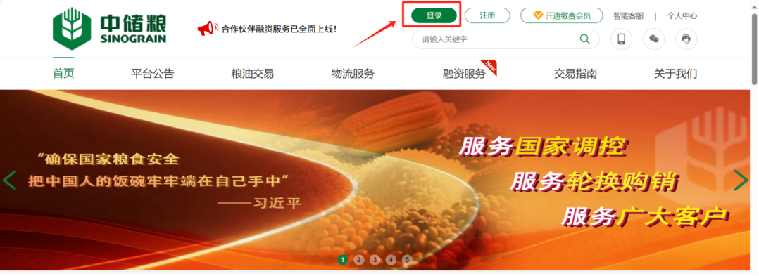 ①进入首页 —— 点击【登录】—— 登录财务账号(即c开头的会员账号)